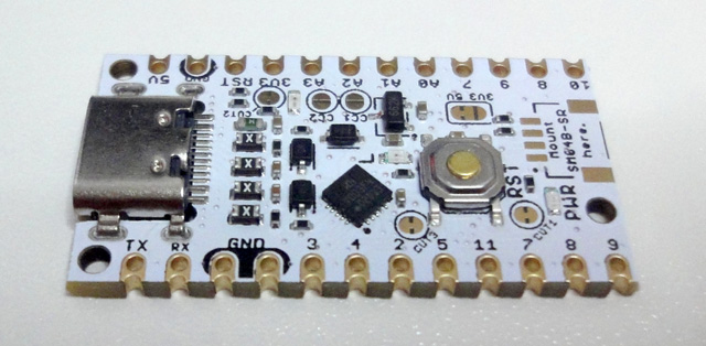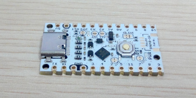 ボード上には、USB Type‑Cコネクタを採用し、電源給電とプログラム書き込みを兼用します。また、電源LED、USB通信LED、ユーザーLED、リセットボタン、qwiicコネクタ実装用PADなどが実装されています。