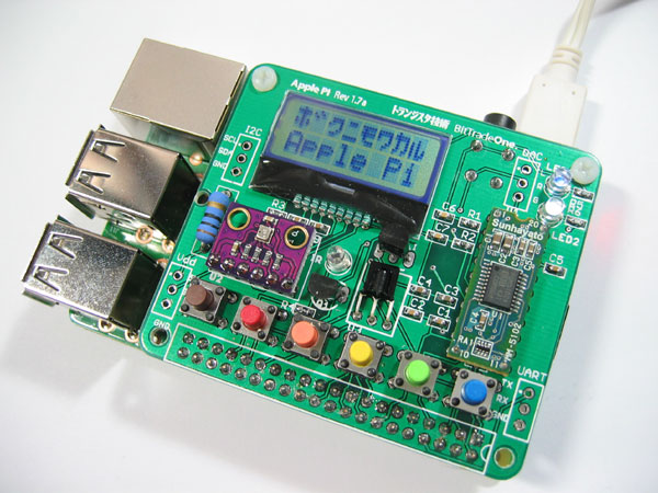 BitTradeOne製の Apple Pi の 温度・湿度・気圧センサ、液晶、赤外線リモコン、スイッチ、LEDに