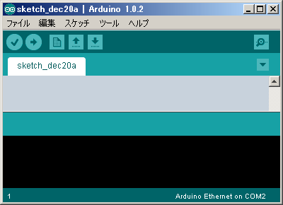 アプリケーションを作成するためにArduinoを接続した状態でArduino IDEを起動します。起動すると下図のような画面が出てきます。