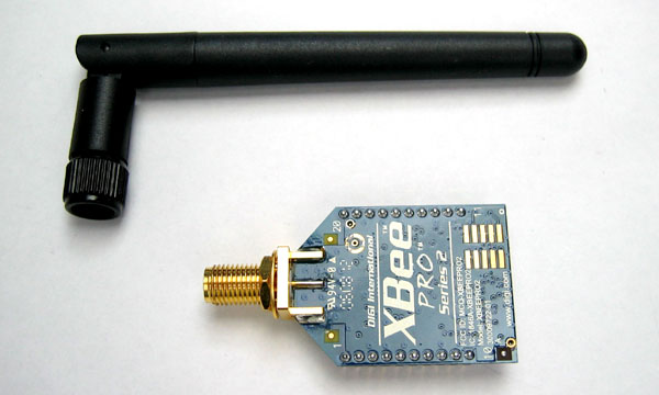 親機用のXBee-PROモジュールはPROではないXBeeでも実験はできます。しかし、XBee-PROの方が通信距離が長いので、なるべくならXBee-PROと専用アンテナの組み合わせをお奨めします。